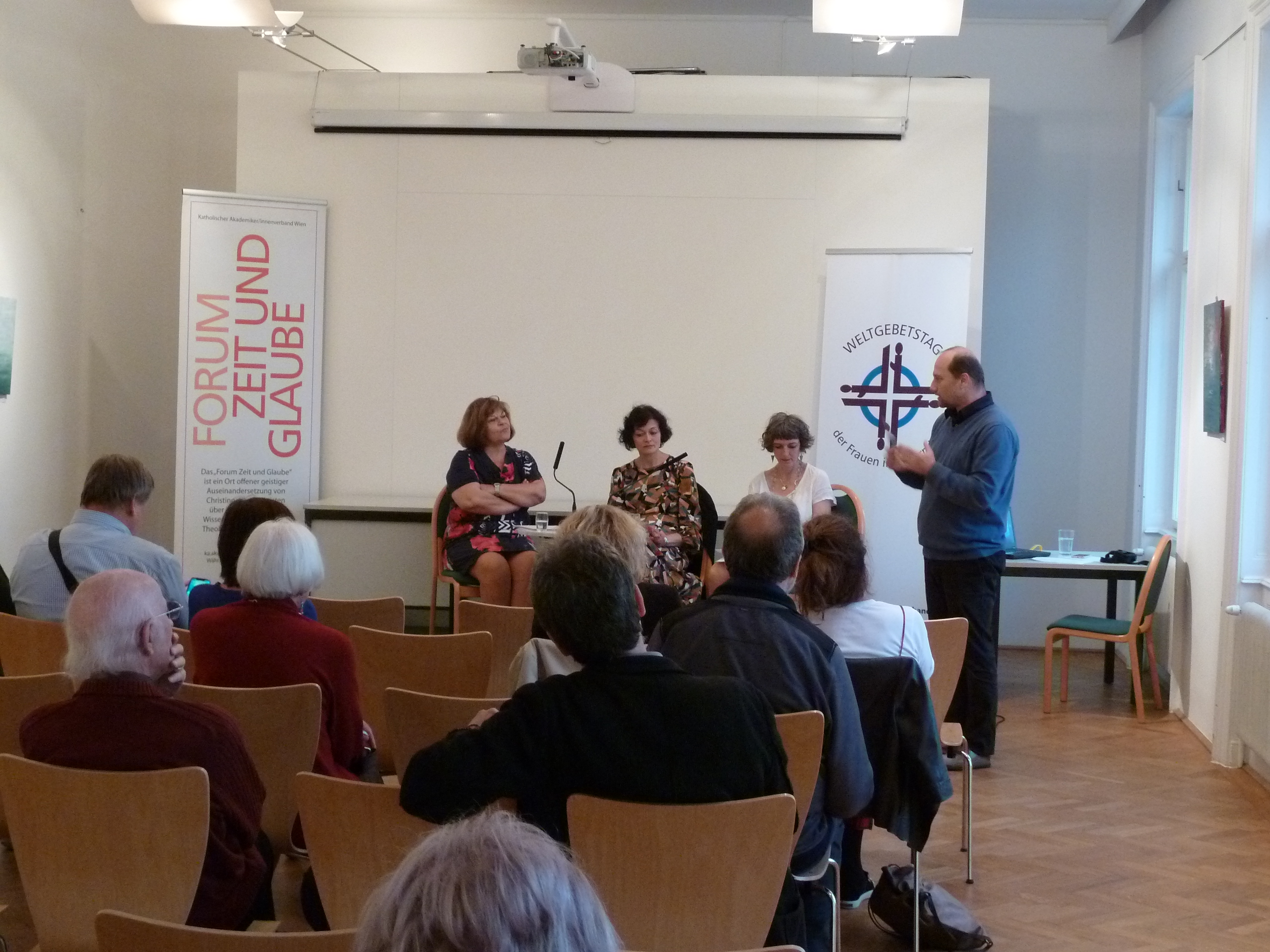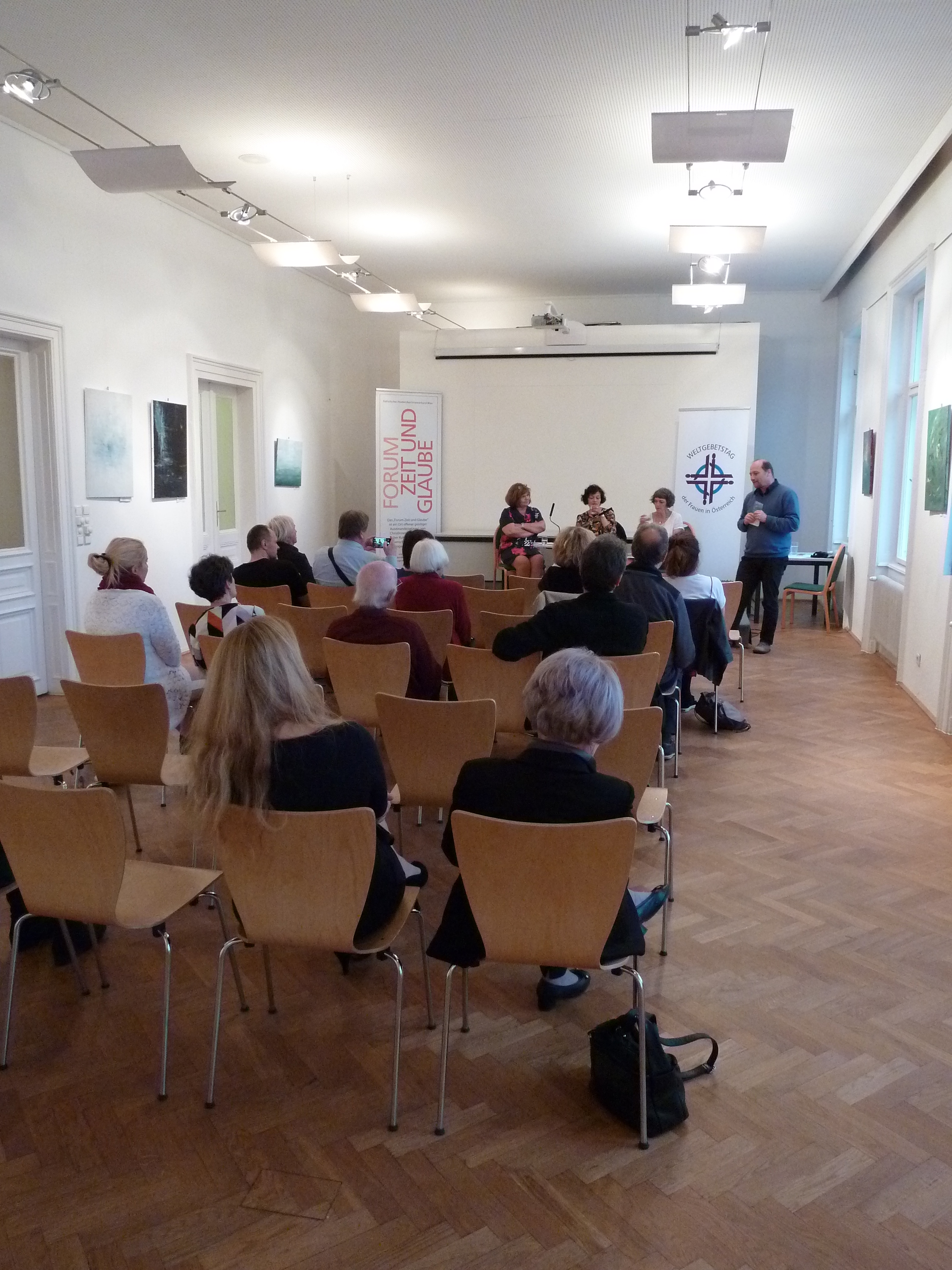 Begrüßt wurden die anwesenden Kunstinteressierten durch Gottfried Riegler-Cech, dem Leiter des Otto-Mauer-Zentrums. Begleitet wurde das Gespräch von ausgewählten Gedichten, vorgelesen von Regina Pendl.