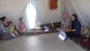 Dank der Förderung durch den Weltgebetstag der Frauen Österreich sollen zunächst sechs jezidische Frauen zu Sozialarbeiterinnen ausgebildet werden. Dadurch verbessert sich nicht nur ihre wirtschaftliche Situation, sondern sie erhalten auch mehr Respekt und Anerkennung innerhalb der Gemeinschaft. Sie informieren Frauen und Mädchen im Lager über Grundregeln der Hygiene und Gesundheitsvorsorge, sowie über Angebote im Bereich von Gender basierter und sexualisierter Gewalt. Ist das Projekt erfolgreich, soll es auch in anderen Lagern übernommen werden.