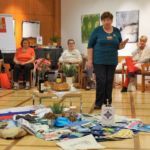 Am Samstag betrachtete die Theologin Uni.Prof. Dr.in Ulrike Bechmann das Gleichnis vom Festmahl aus dem Lukas Evangelium im Rahmen der Bibelarbeit näher. “Das Gleichnis illustriert die neue christliche Mahlgemeinschaft. Wendepunkt ist die Umkehr des Gastgebers hin zu einer neuen Wertewelt, in der Anderes eine Rolle spielt. Sie eint nicht das Milieu, sondern das Bekenntnis zu Jesus als dem Christus, dem Messias. Im gemeinsamen Mahl ist das Reich Gottes gegenwärtig, eine neue Gemeinschaft aus Armen und Reichen entsteht.” (WGT-Arbeitsheft; Bechmann) Die Frauen aus Slowenien haben das Gleichnis gewählt, um auf die noch immer währende große Kluft der Ungleichheit zwischen Armut und Reichtum hinzuweisen, in der kein Platz für das gemeinsame Feiern eines Festes ist. In einer Welt, in der nur das Anhäufen von Besitztümern und Reichtum zählt, aber auf Emotionen und ein Mit-Einander kein Wert gelegt wird – besonders hier ist eine Zuwendung zum Glauben an Gott von essentieller Bedeutung. Zugleich gibt das Gleichnis besonders den Ausgegrenzten der Gesellschaft Halt und Hoffnung, auch “satt” werden zu können im Leben.