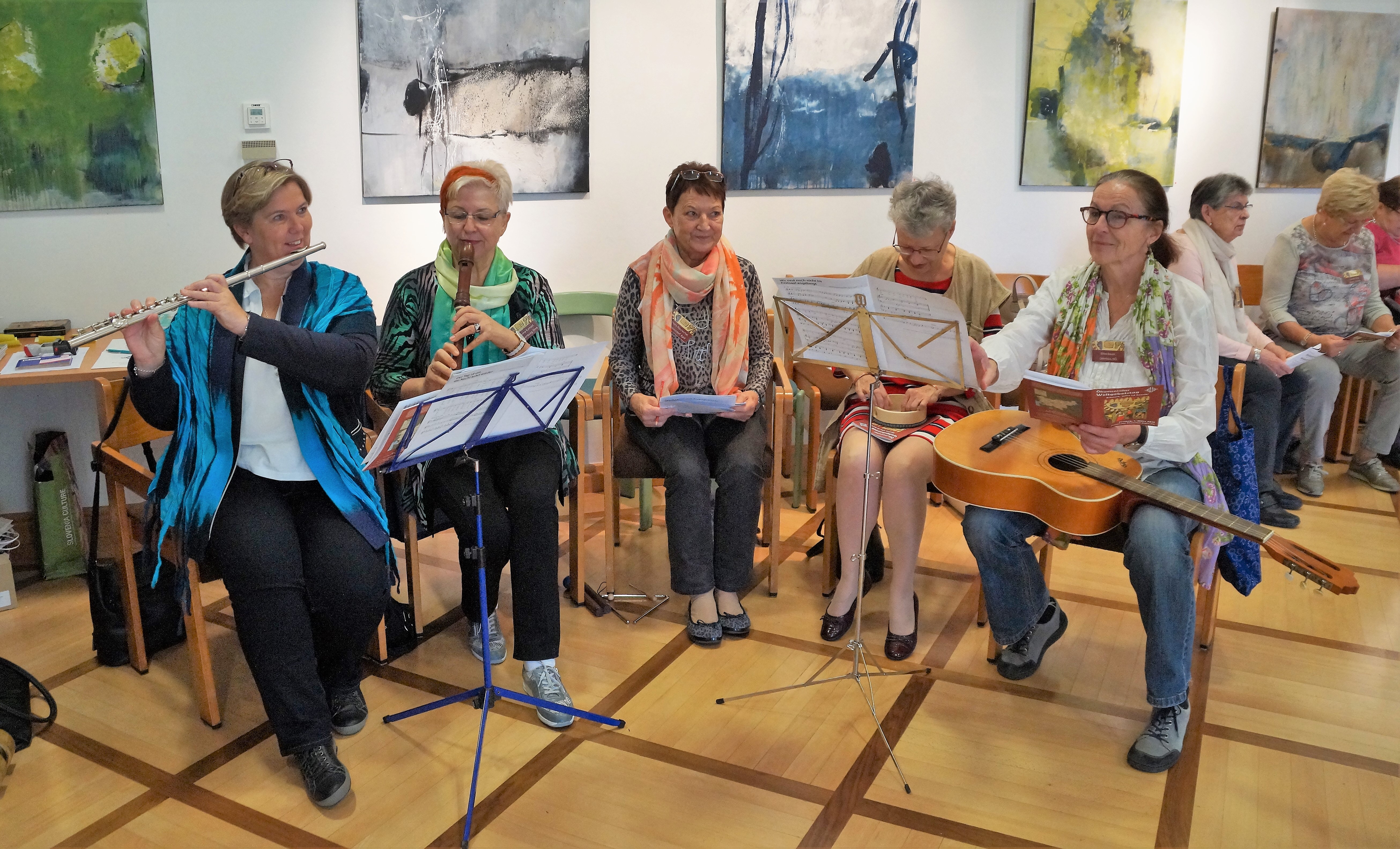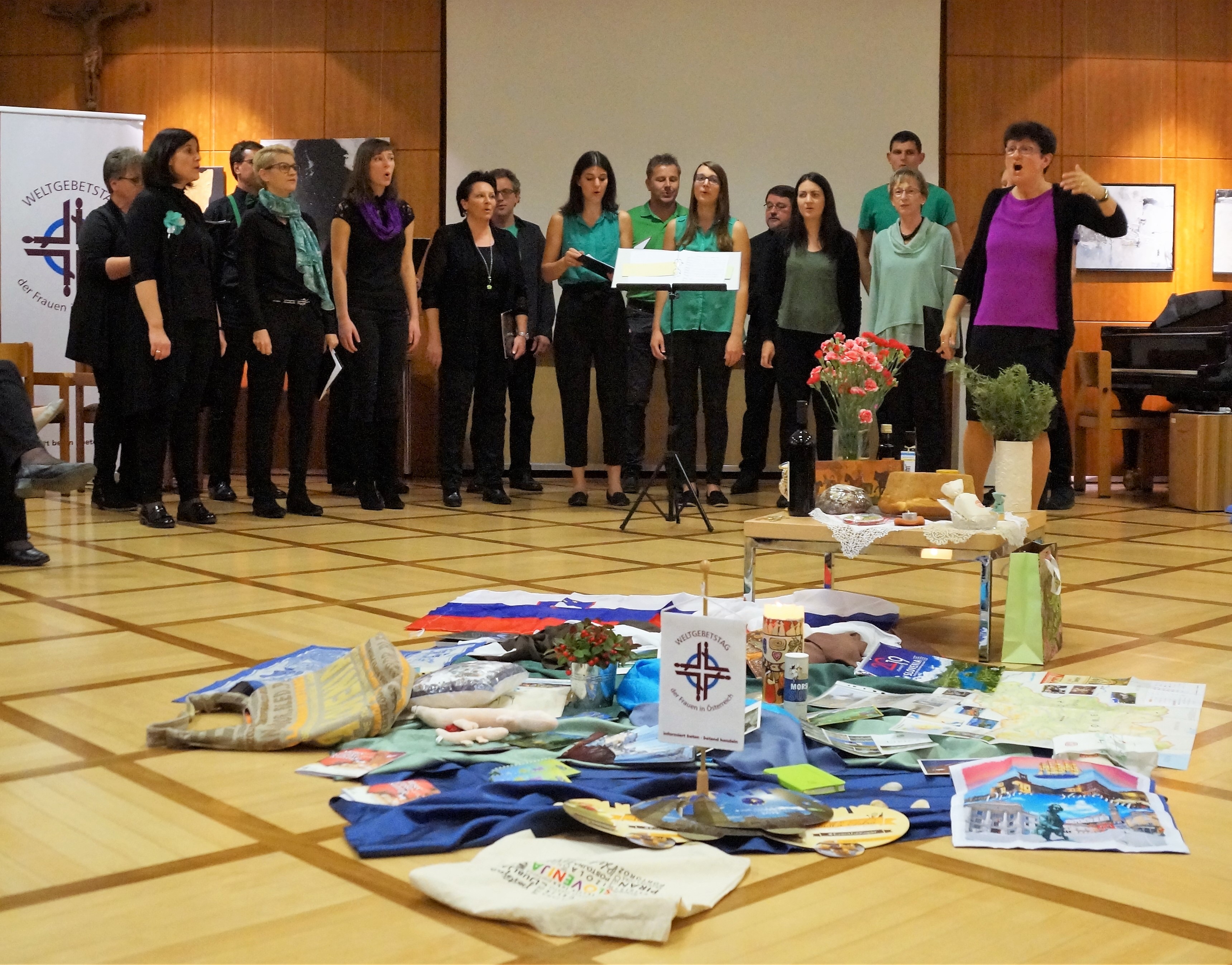 Auch der Samstagabend fand ganz im Zeichen des Schwerpunktlandes Slowenien statt. Der Chor Skupina Akzent trug den begeisterten Teilnehmerinnen mehrere Volkslieder und auch Kirchenlieder in slowenisch und englisch vor.